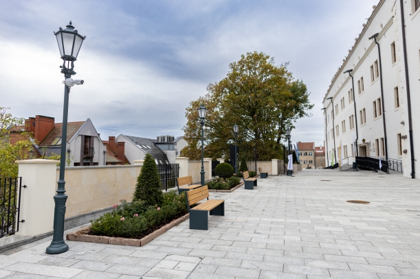 Dzięki specjalnym pochylniom i automatycznej platformie tarasy są teraz także dostępne, od ul. Kuśnierskiej, dla osób z niepełnosprawnościami.