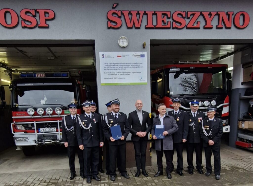 Z kolei OSP w Świeszynie posiada trzy samochody pożarnicze, ale ich średnia wieku wynosi już ponad 20 lat. Jednostka, która wpisana jest do Krajowego Systemu Ratowniczo-Gaśniczego, bardzo potrzebuje nowego wozu, bo chroni ponad 66 tysięcy mieszkańców powiatu koszalińskiego. W ciągu ostatnich dwóch lat przeprowadziła prawie 150 akcji. Nowoczesny pojazd, który pojawi się najpóźniej do grudnia 2025 roku, ma kosztować ponad 1,6 mln zł. Urząd Marszałkowski z funduszy europejskich dołoży do zakupu prawie 1,4 mln zł.