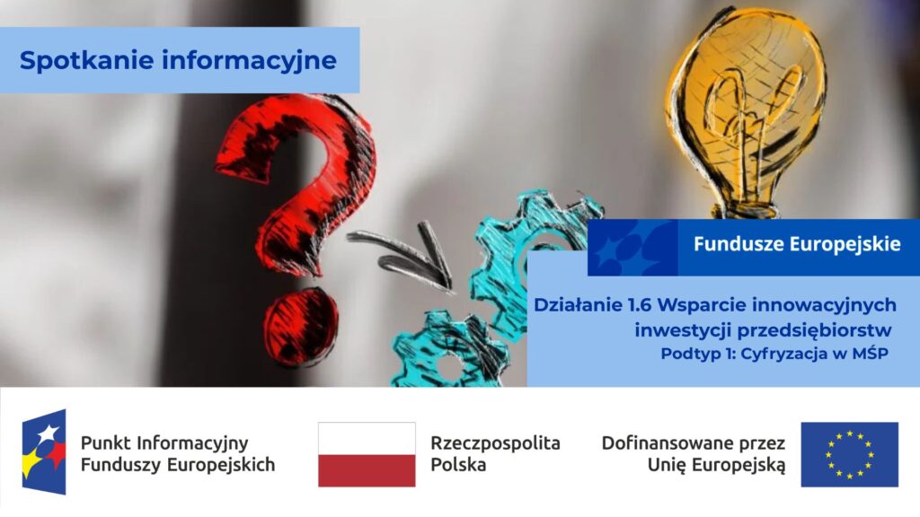 Przypominamy, że trwają zapisy na bezpłatne webinarium, które odbędzie się 30 lipca 2025 r. o godzinie 10.00 i dotyczyć będzie Działania 1.6 Wsparcie innowacyjnych inwestycji przedsiębiorstw. Podtyp 1: Cyfryzacja w MŚP.